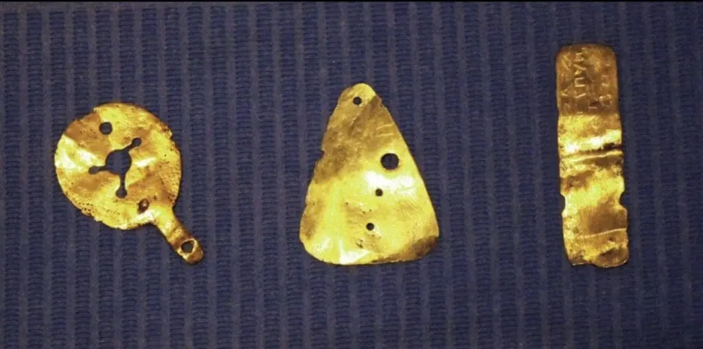 Maybe we will find evidence of a contemporary written language. The photo of the metal plates does show some etching on the first piece on the right that could represent writing. For now, we just have the artifacts themselves and Mario’s word that they were found together.